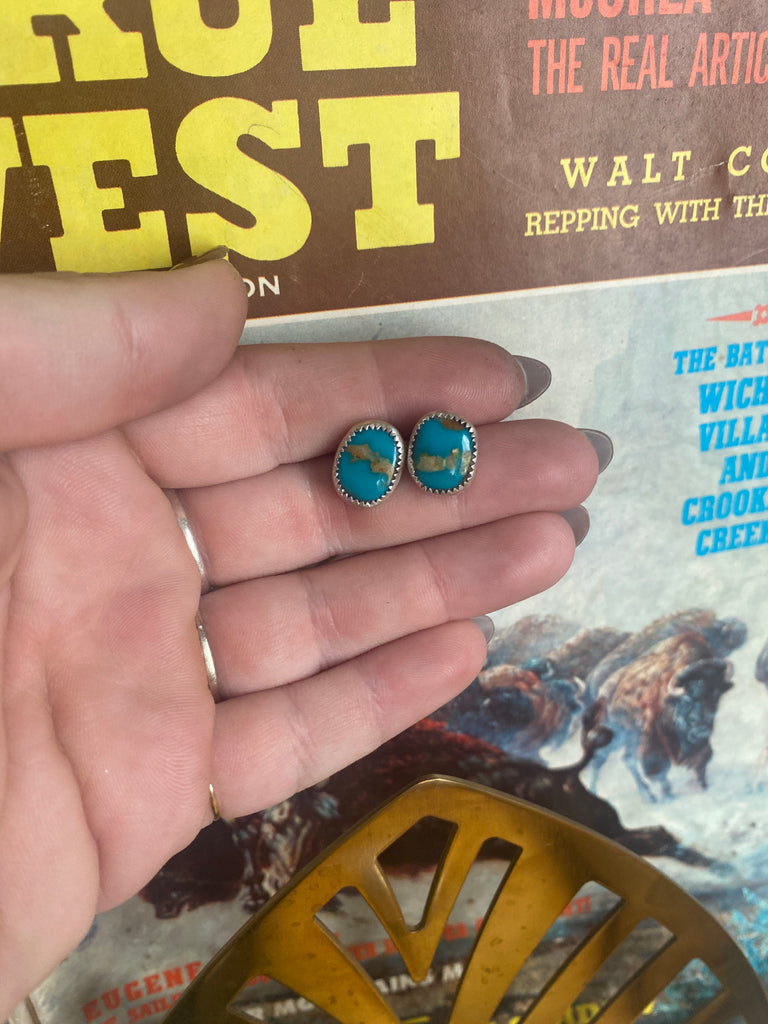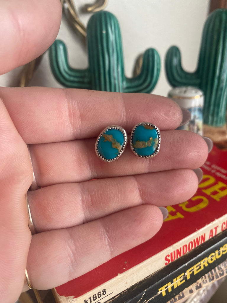 Simple sterling and turquoise studs, made from .925 sterling silver and genuine turquoise.