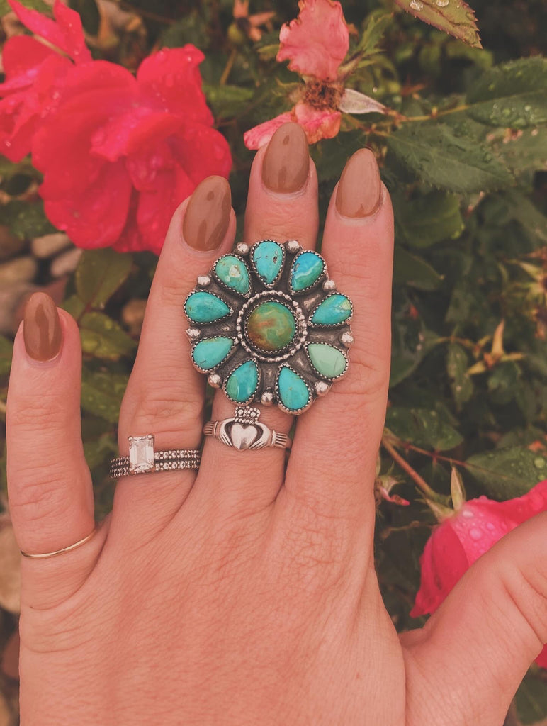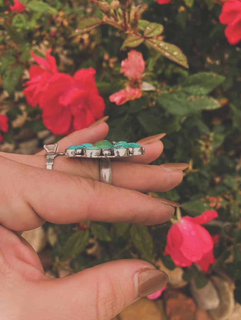 Size 7, made almost completely from hand cranked, refined sterling silver. This beauty was a labor of love and os sure to make a statement anywhere she goes.
